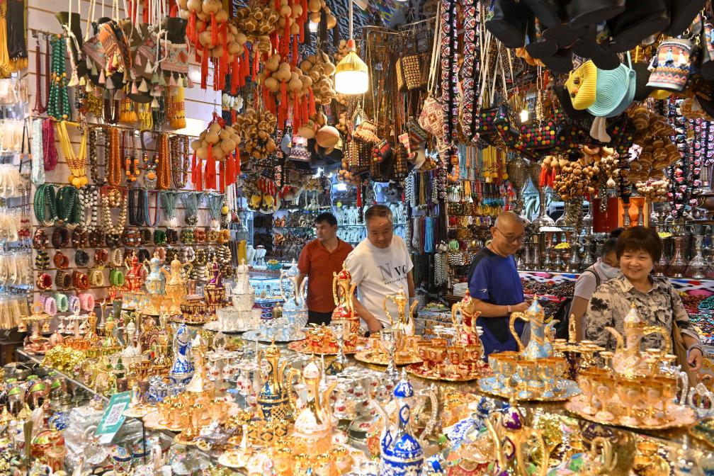 9月14日晚,游客在新疆喀什古城景區游覽購物。(新華社記者郝建偉攝)