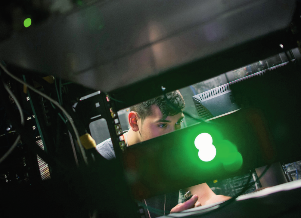 在美國華盛頓,一名工程師將電腦接入網絡(資料照片)