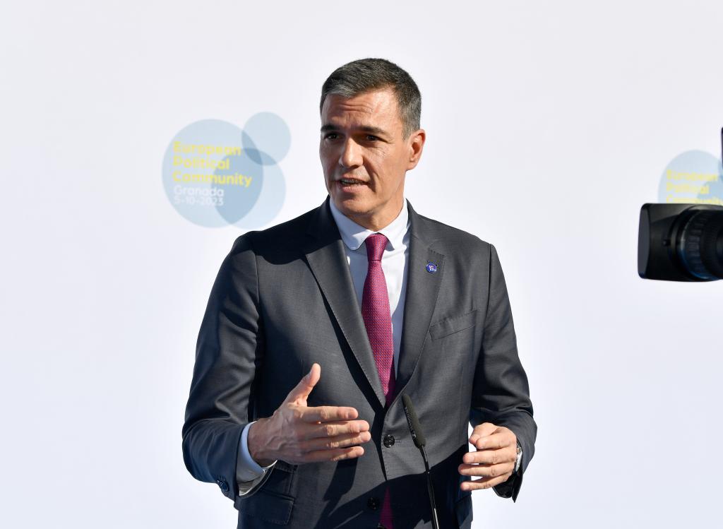 10月5日,在西班牙格拉納達,西班牙代理首相桑切斯前來參加第三屆歐洲政治共同體領導人會議。新華社記者連漪攝