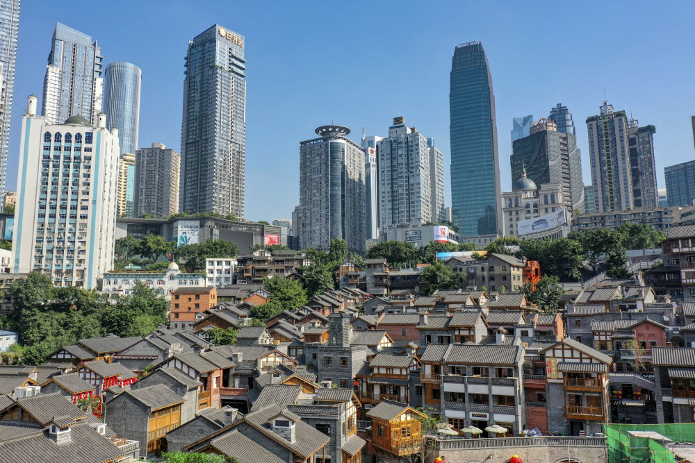 ↑重慶解放碑商業區(上)與十八梯傳統風貌區