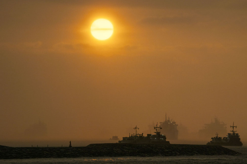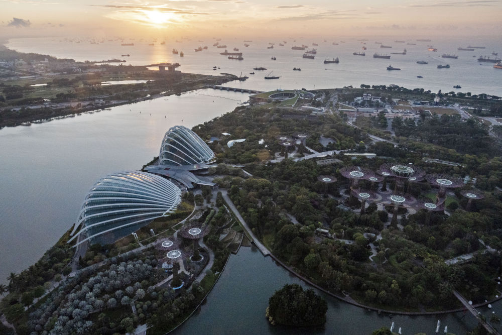 ↑商業船只停泊在作為馬六甲海峽一部分的新加坡海峽。
