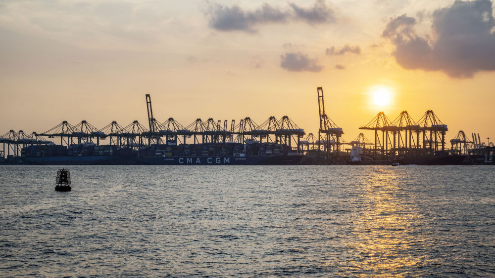 ↑貨輪停泊在新加坡巴西班讓集裝箱碼頭裝卸貨物。位于馬六甲海峽東南側的新加坡港,扼太平洋、印度洋航運要道,是東西方海洋貿易的必經之地、世界最大的集裝箱港口之一,也是“21世紀海上絲綢之路”的一處重要支點。