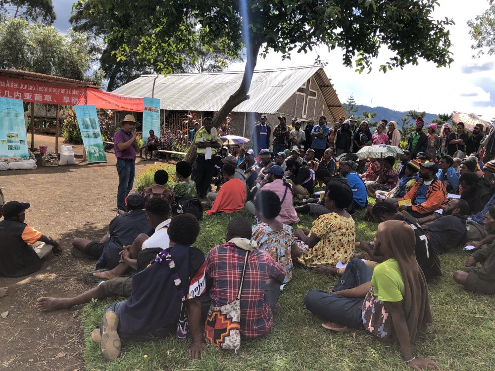 中國專家在巴布亞新幾內亞東高地省中國援助巴新菌草和旱稻技術項目第9期培訓班上授課(2020年12月15日攝)。新華社發