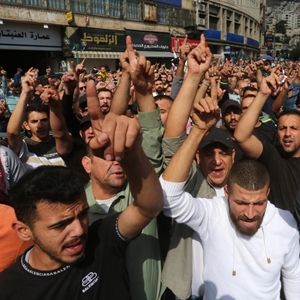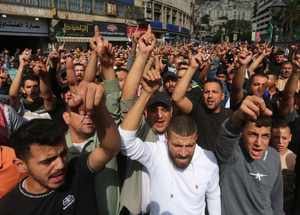10月18日,在約旦河西岸城市納布盧斯,民眾上街游行抗議加沙醫院遭襲。新華社發(尼達爾·艾仕塔耶攝)