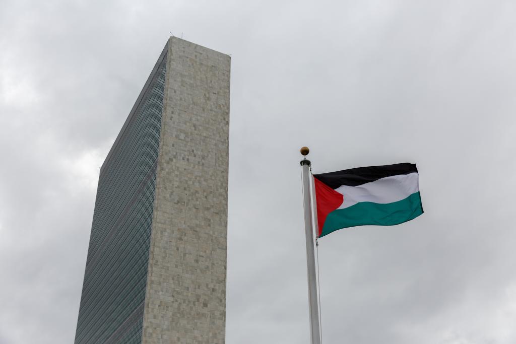 2015年9月30日,紐約聯合國總部升起巴勒斯坦國旗。新華社記者李木子攝