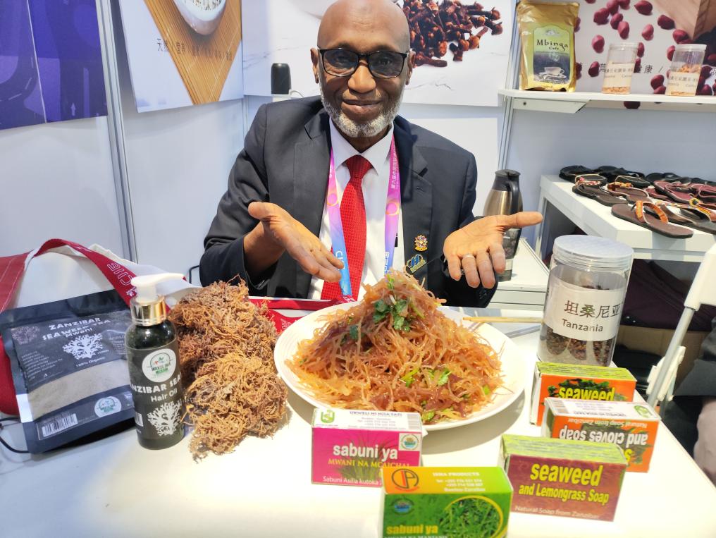 “來到進博會,才知道我們的海藻產品有個好聽的中國名字——麒麟菜,我們當地叫它Mwani?!边M博會上,來自坦桑尼亞的參展商納蘇爾·達基向記者介紹起來:麒麟菜是產自坦桑尼亞桑給巴爾島的特色海藻,既可以直接作為涼菜,也可以用作工業原料,被當地譽為“綠色黃金”。