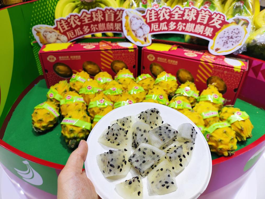 11月7日,第六屆進博會佳農展臺上的麒麟果。新華社記者楊洋 攝