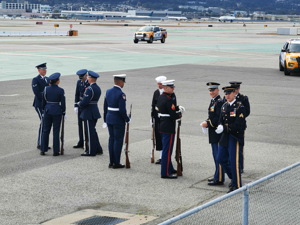 當地時間14日午后,美方人員抵達機場,為迎接專機做最后的準備。
