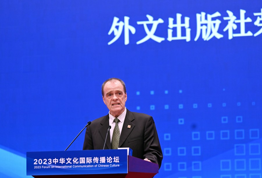 9月22日,外文出版社榮譽英文主編大衛·弗格森在2023中華文化國際傳播論壇上發言。新華社記者 金良快 攝
