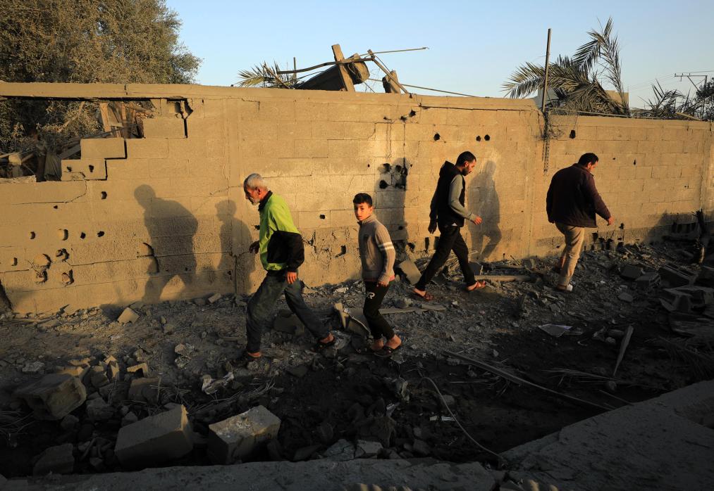 11月23日,在加沙地帶南部的汗尤尼斯,人們從以軍襲擊后破損的街頭走過。新華社發(亞西爾·庫迪攝)
