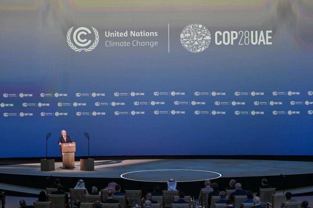 2023年12月1日,聯合國秘書長古特雷斯在阿聯酋迪拜世界氣候行動峰會開幕現場致辭。新華社發(聯合國氣候變化迪拜大會供圖)