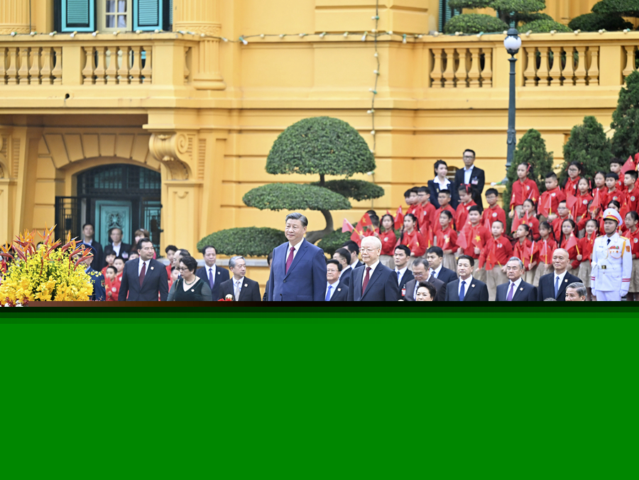 當地時間12月12日下午,剛剛抵達河內的中共中央總書記、國家主席習近平在越共中央駐地同越共中央總書記阮富仲舉行會談。這是阮富仲在主席府廣場為習近平舉行隆重歡迎儀式。新華社記者 鞠鵬 攝