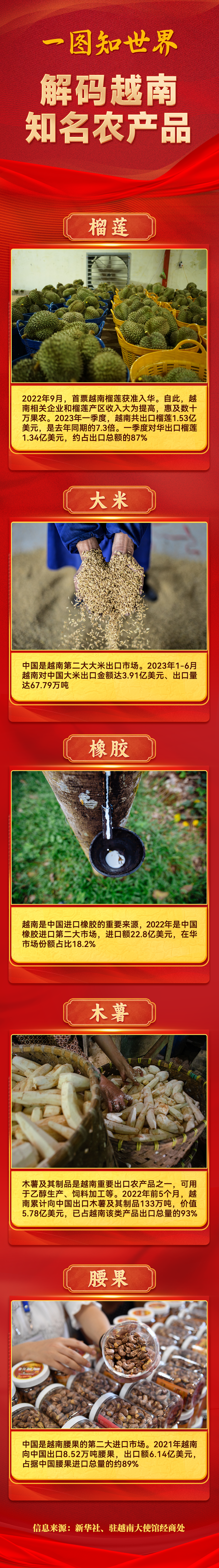 分享機遇、共謀發展。中國與越南農業領域合作空間廣闊,農產品進出口規模持續擴大。今年前11個月,中國進口越南農產品446.2億元,同比增長20.3%。