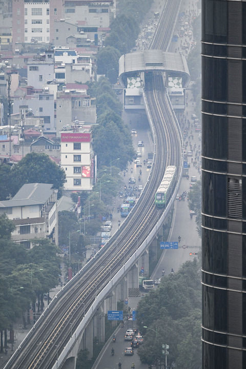 2023年12月9日,列車在越南河內吉靈-河東輕軌線上行駛。河內吉靈-河東線輕軌由中國中鐵六局集團有限公司承建,是中越兩國共建“一帶一路”的標志性項目。新華社記者 程一恒 攝