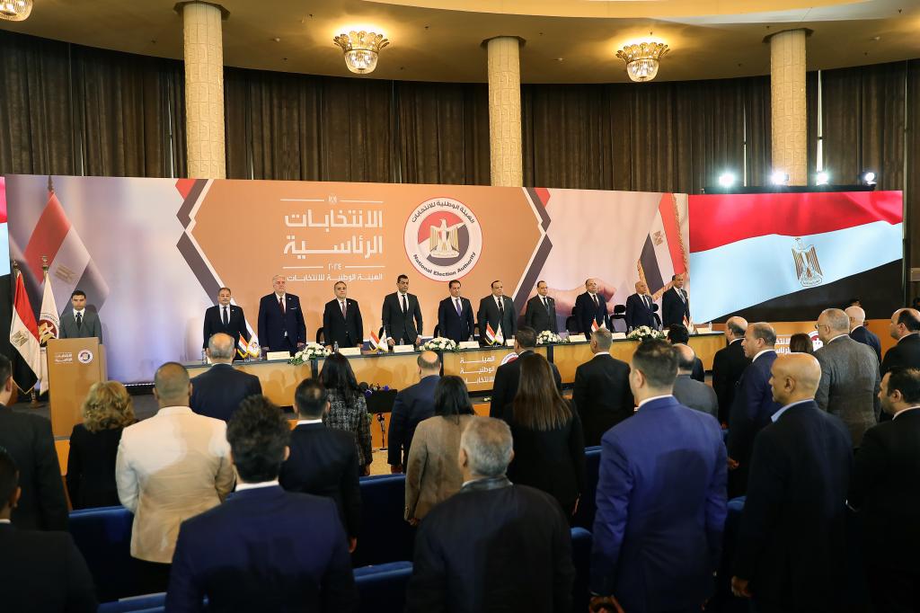 12月18日,埃及全國選舉委員會宣布總統選舉結果,現任總統塞西獲勝。這是12月18日在埃及首都開羅拍攝的新聞發布會現場。(新華社記者王東震攝)
