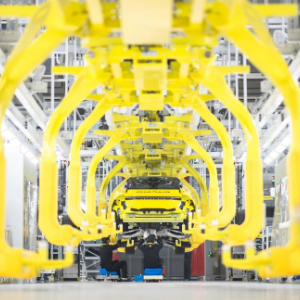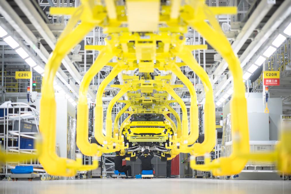 2023年1月11日,在位于湖北省武漢市經開區智能網聯和電動汽車產業園的路特斯全球智能工廠,工人在流水線上作業。新華社記者肖藝九攝
