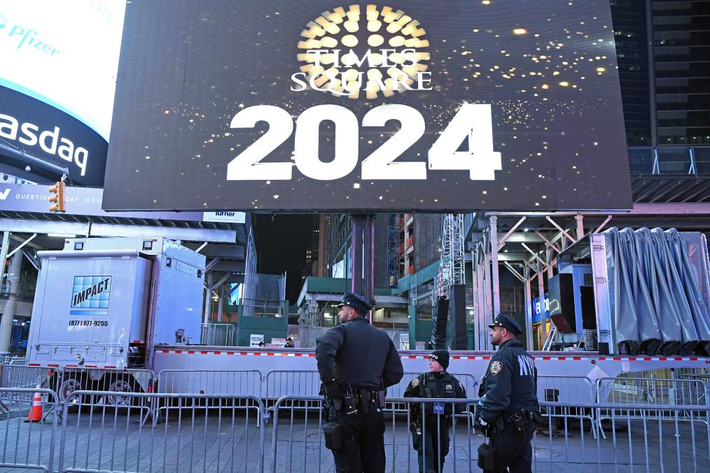 2023年12月31日,警察在美國紐約時報廣場警戒。新華社記者李睿攝