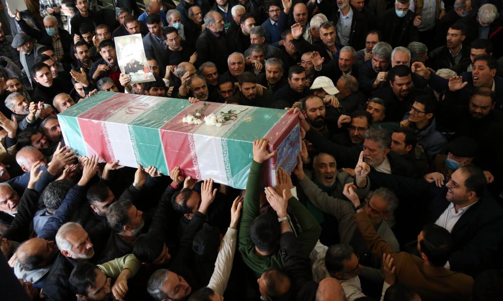 1月5日,在伊朗德黑蘭,人們參加克爾曼市爆炸襲擊事件遇難者的葬禮。新華社記者沙達提攝