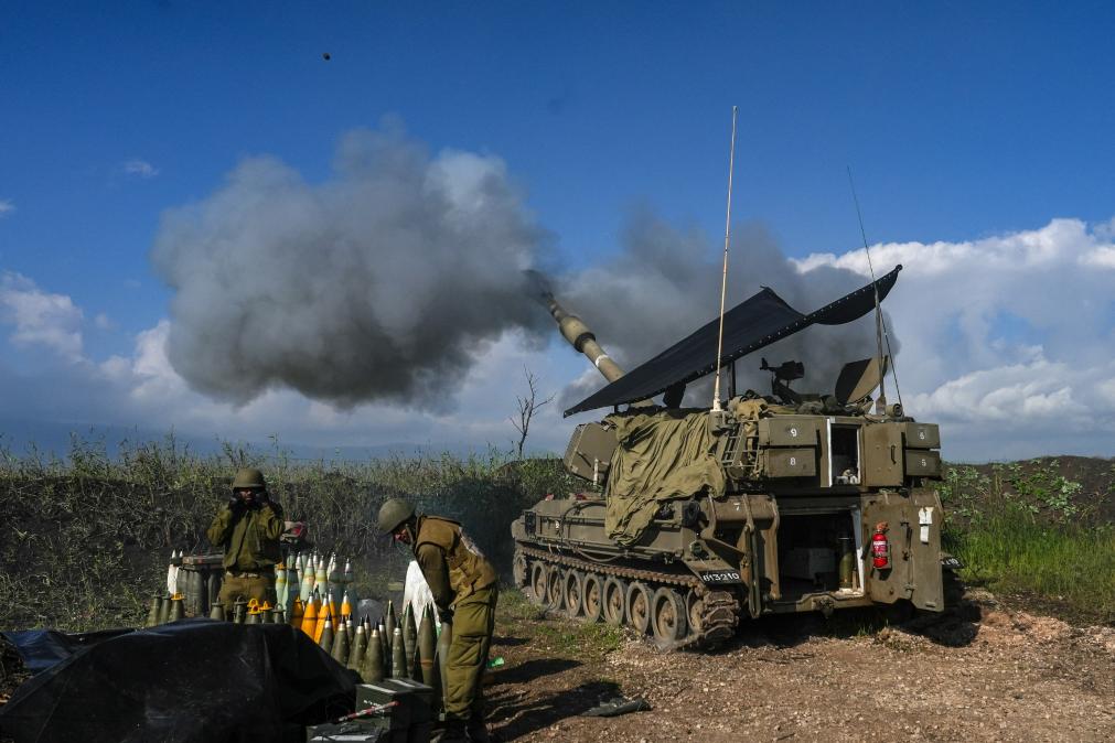 1月4日,在以色列北部邊境,以軍的一門自行榴彈炮向黎巴嫩南部開火。新華社發(阿亞爾·馬戈林攝/基尼圖片社)