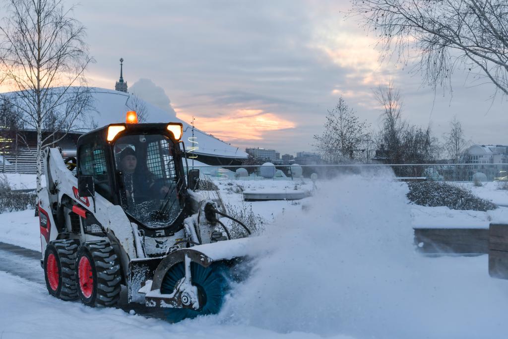 1月6日,在俄羅斯首都莫斯科,工作人員駕駛除雪車清理路面積雪。(新華社記者曹陽攝)