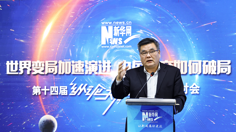 1月9日,新華網第十四屆“縱論天下”國際問題研討會在北京新華網總部舉辦。圖為北京外國語大學區域與全球治理高等研究院教授崔洪建在進行主題演講。新華網 楊霽昕 攝