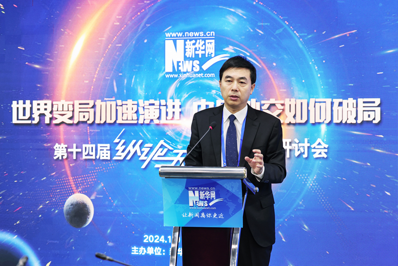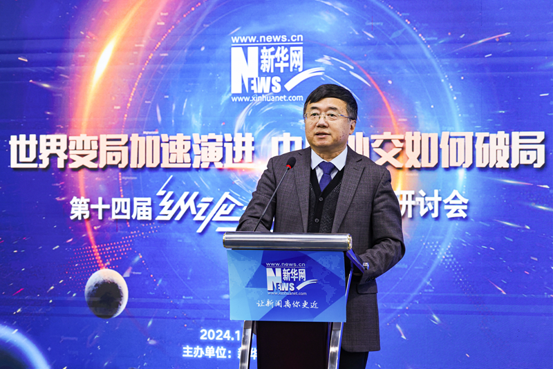 1月9日,新華網第十四屆“縱論天下”國際問題研討會在北京新華網總部舉辦。圖為外交學院院長、中國國際關系學會副會長王帆在進行主題演講。新華網 楊霽昕 攝