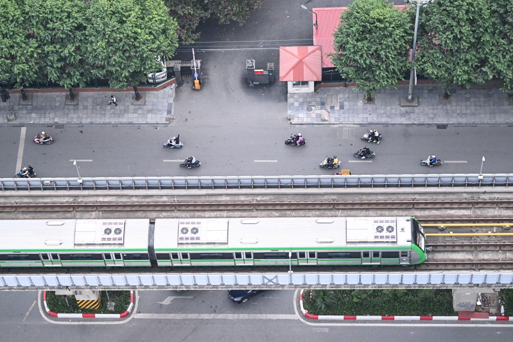 2023年12月9日,列車在越南河內吉靈-河東輕軌線上行駛。新華社記者程一恒攝