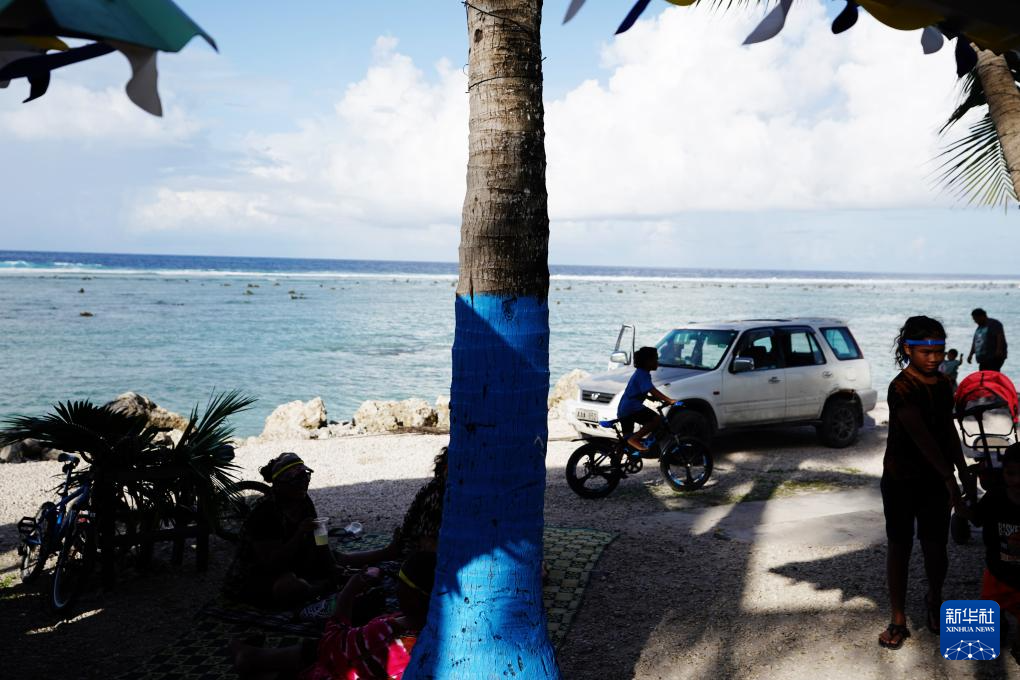 1月20日,當地人在瑙魯一處海灘休閑娛樂。新華社記者 王申 攝