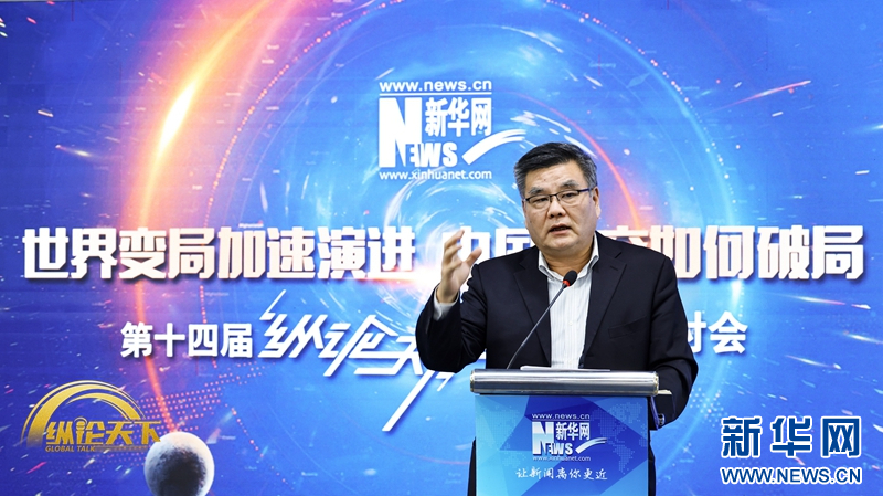 新華網第十四屆“縱論天下”國際問題研討會近日在北京新華網總部舉辦。圖為北京外國語大學區域與全球治理高等研究院教授崔洪建在進行主題演講。新華網 楊霽昕 攝