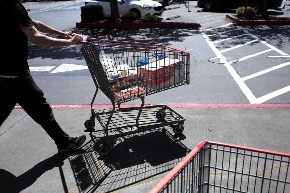 圖為2021年5月4日,顧客在美國加利福尼亞州北部舊金山灣區的一家超市購物。(新華社記者吳曉凌攝)
