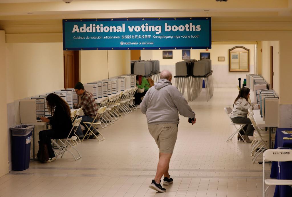 3月5日,選民在美國舊金山一個投票站內投票。美國2024年總統選舉5日迎來所謂“超級星期二”黨內初選,十幾個州和美國領地的選民當天為競選人投票。新華社發(李建國攝)