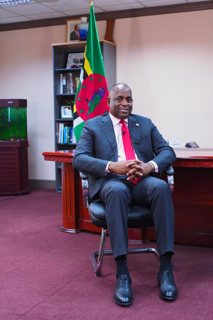 3月4日,多米尼克總理斯凱里特在首都羅索的總理辦公室接受新華社記者獨家專訪。新華社記者 趙凱 攝