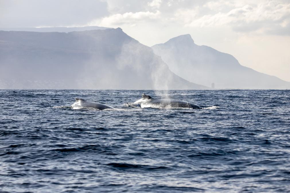 2022年6月15日,在南非開普敦,鯨魚在海中游弋。新華社記者呂天然攝