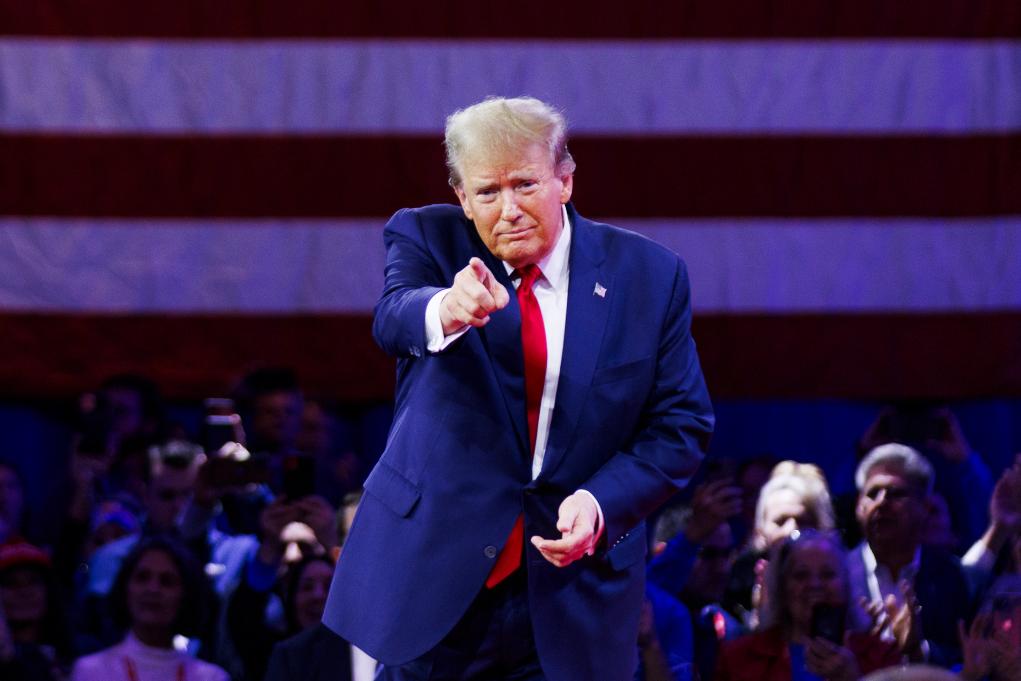 2月24日,在美國馬里蘭州國家港灣,美國前總統特朗普在保守派政治行動會議上講話。新華社發(亞倫攝)