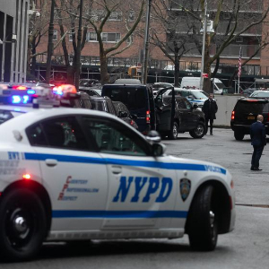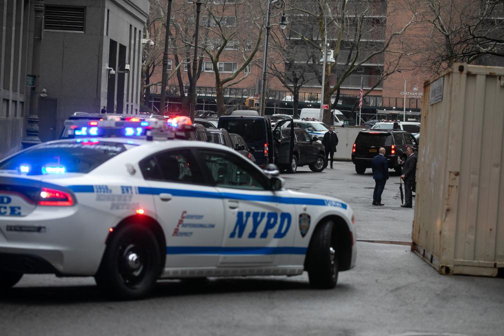 2024年1月25日,在美國紐約,美國前總統特朗普的車隊在法院外等待。新華社發郭克攝