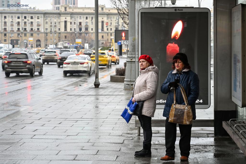 3月23日,俄羅斯首都莫斯科街頭的廣告牌播出蠟燭圖案,悼念莫斯科近郊恐襲事件遇難者。新華社記者曹陽攝