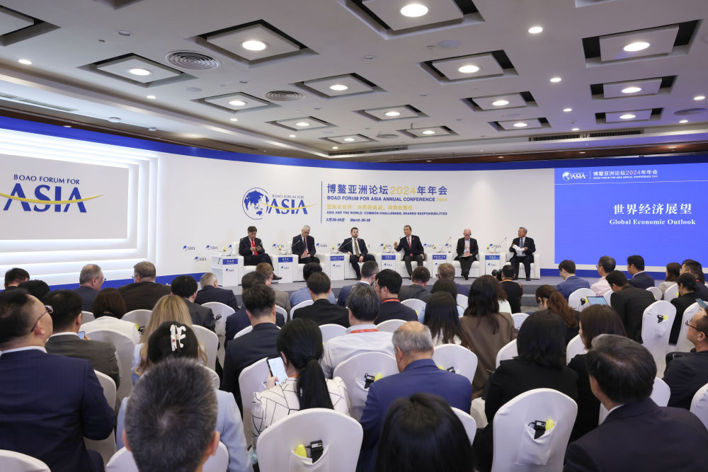 這是博鰲亞洲論壇2024年年會“世界經濟展望”分論壇現場(2024年3月27日攝)。新華社記者 唐如峰 攝