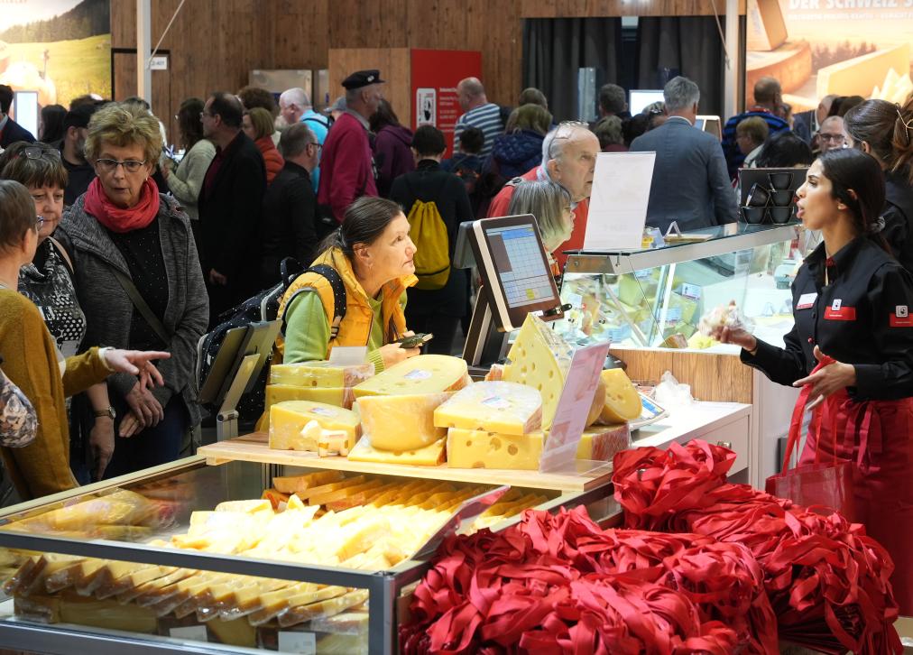 2023年1月20日,人們在德國柏林國際綠色周上選購奶酪。新華社發(斯特凡·蔡茨攝)