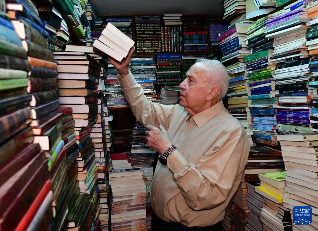 在大馬士革市中心一間低矮陳舊的房屋里,80歲的店主巴希爾·賈卡斯在堆積如山的書籍間騰挪,像介紹自家孩子一樣向記者講解著書架上各類書籍。
