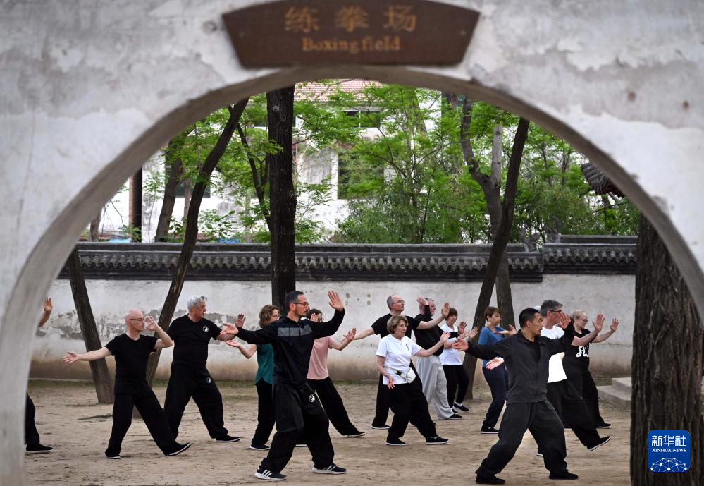 法國學員在陳家溝太極拳學校習練太極拳(2024年4月18日攝)。 新華社記者 李安 攝