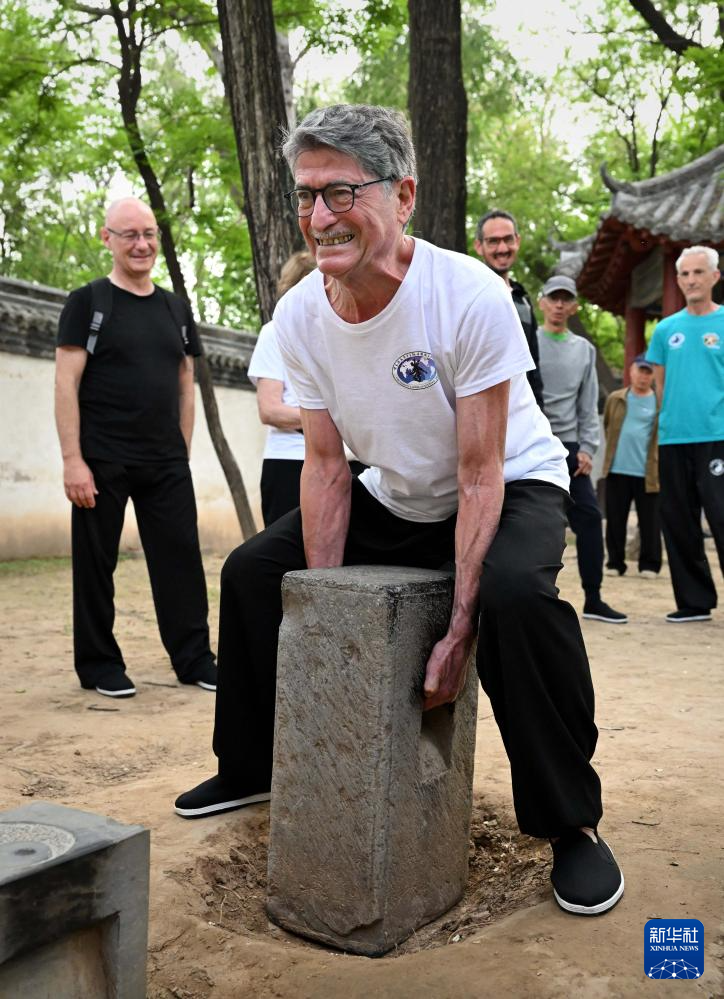一名法國學員在陳家溝楊露禪學拳處體驗練功垛石(2024年4月18日攝)。 新華社記者 李安 攝