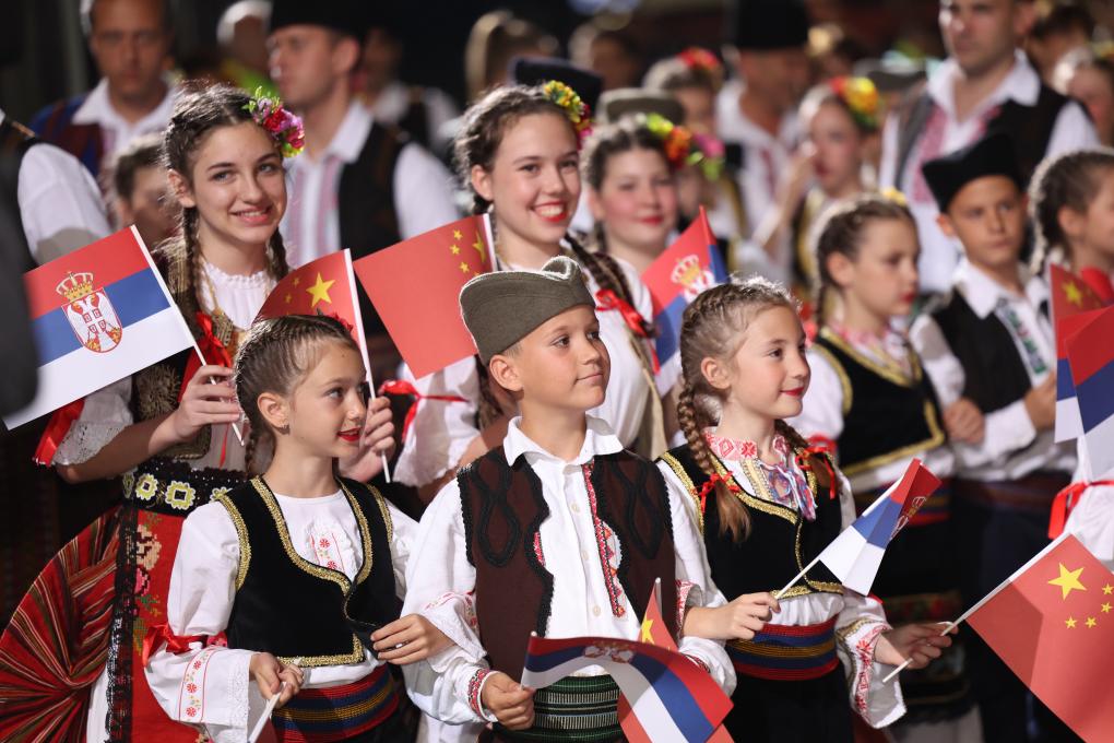 武契奇在機場為習近平舉行獨具特色的迎賓儀式。塞爾維亞少年兒童向習近平和彭麗媛獻花,揮舞中塞兩國國旗,身著民族盛裝的塞爾維亞民眾載歌載舞熱烈歡迎。