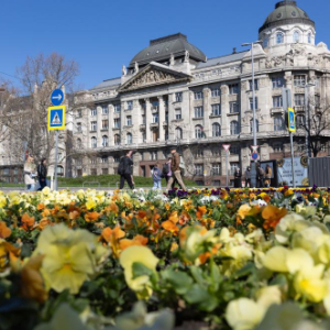 2024年3月17日,在布達佩斯,匈牙利內務部大樓前鮮花盛開。