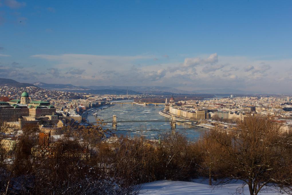 2012年2月15日從布達佩斯多瑙河畔的蓋雷特山上拍攝的雪景。