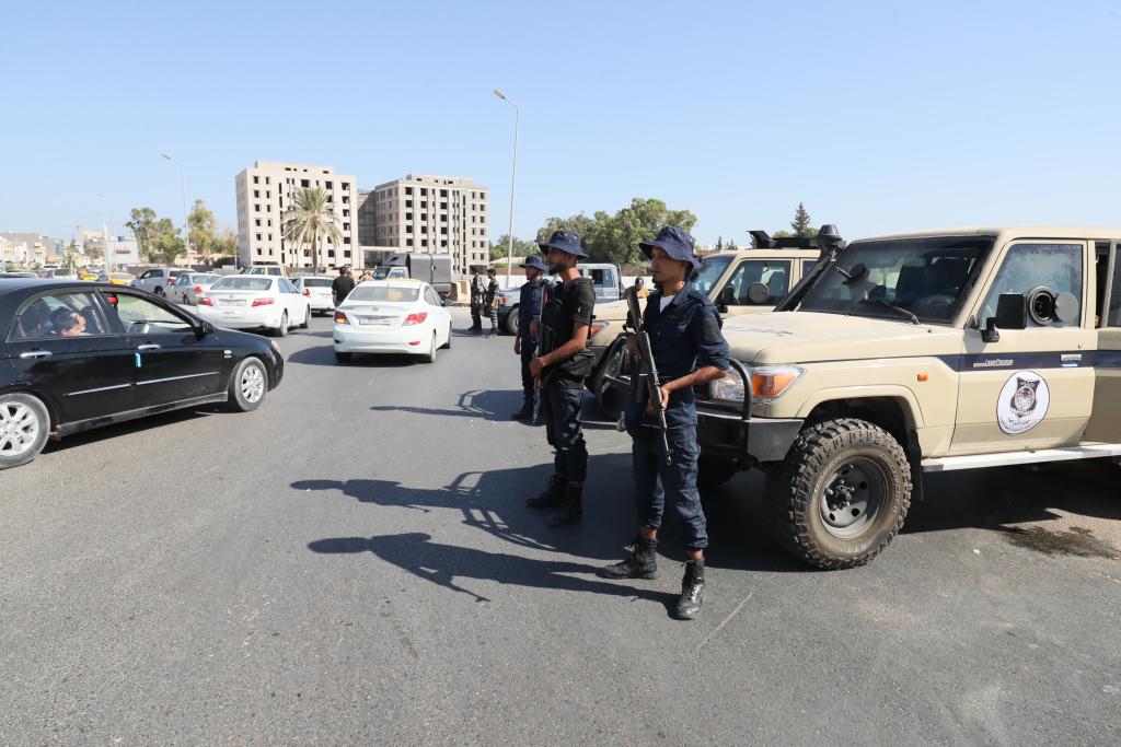 2023年8月16日,利比亞沖突?;鸷?,利比亞公共安全部門人員在的黎波里的艾因扎拉區保障安全。 新華社發(哈姆扎·圖爾基亞攝)