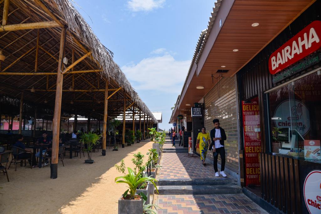 3月27日,人們行走在斯里蘭卡科倫坡港口城的沙灘美食廣場。新華社記者徐欽攝