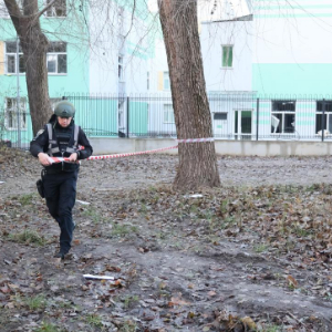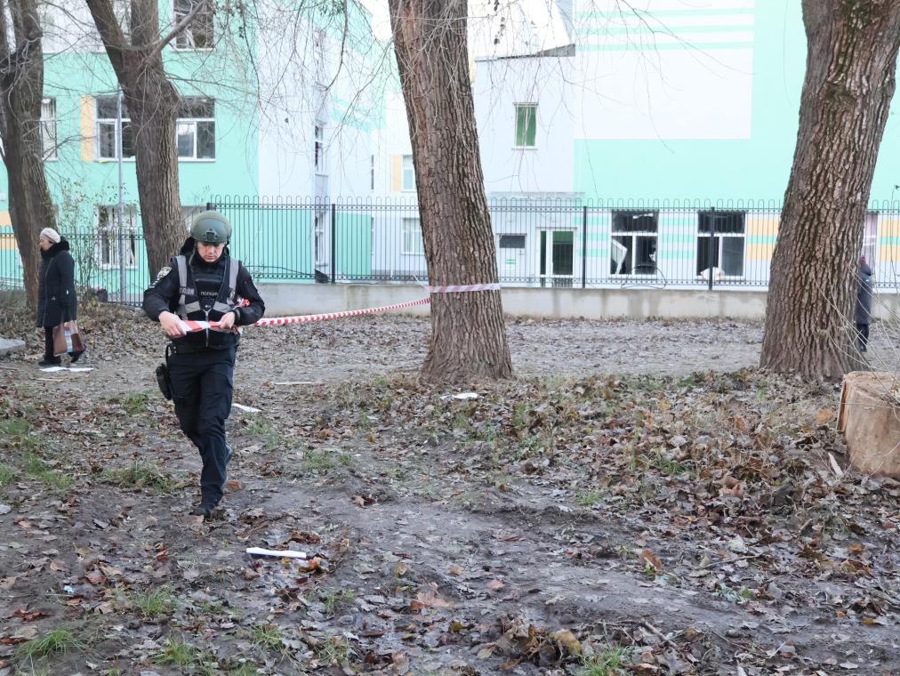 2023年11月25日,在烏克蘭基輔市,執法人員封鎖空襲現場。新華社發(羅曼·佩圖什科夫攝)
