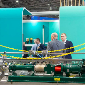 這是5月6日在美國休斯敦國際海洋油氣技術大會及設備展上拍攝的展示的裝備。新華社發(勞承躍攝)