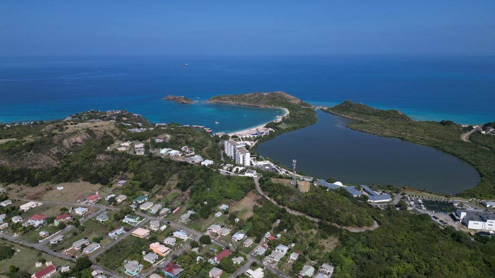 這是2月1日用無人機拍攝的安提瓜和巴布達首都圣約翰海岸線一景。新華社發(里卡多·蒙托亞攝)