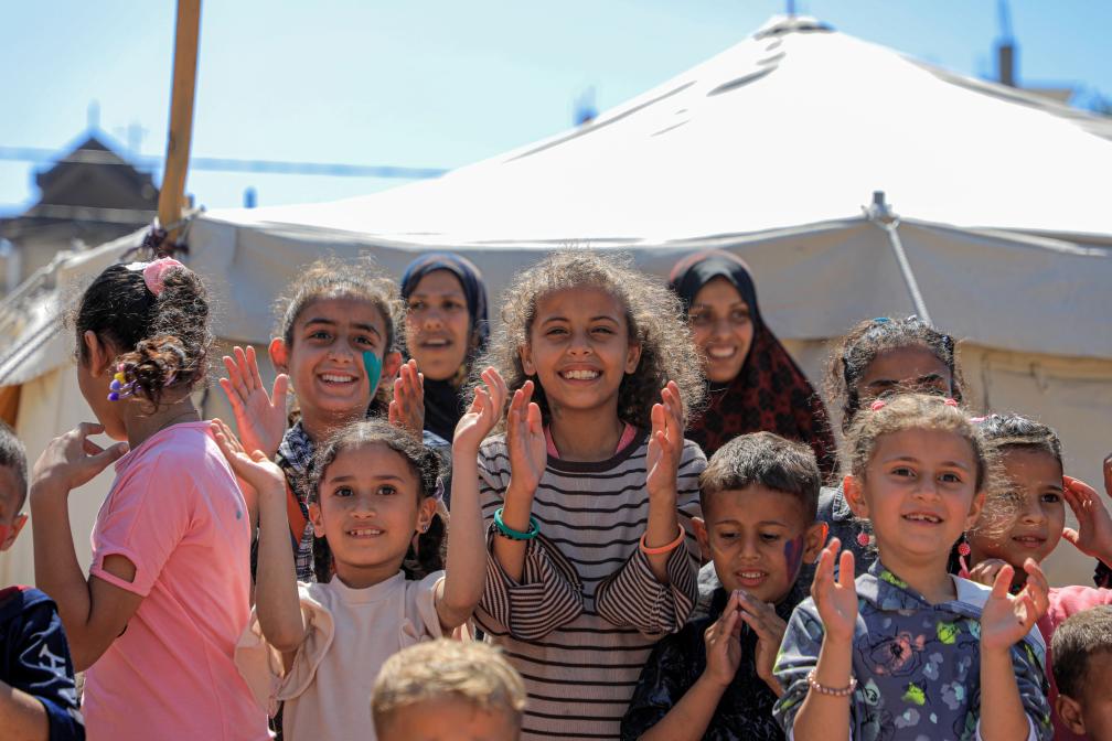 4月10日,在加沙地帶南部城市拉法,孩子們參加當地組織的關愛兒童志愿活動。新華社發(里澤克·阿卜杜勒賈瓦德 攝)